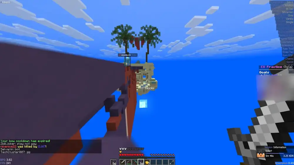 The client is designed to enhance performance and give you a competitive edge in battles and minigames. It includes powerful modules such as ESP, X-Ray, Fly, Auto Render, Velocity, and many other advanced tools. Automation features help handle actions like using golden apples or activating totems, allowing you to focus fully on combat and strategy.