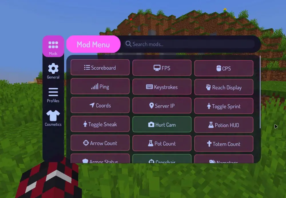 The mod runs on Fabric and requires no complicated setup. Once installed, all features become available through a well-organized menu, where modules are grouped by category. This makes it easy to enable only what you need, whether you focus on combat, movement, or general quality-of-life improvements.