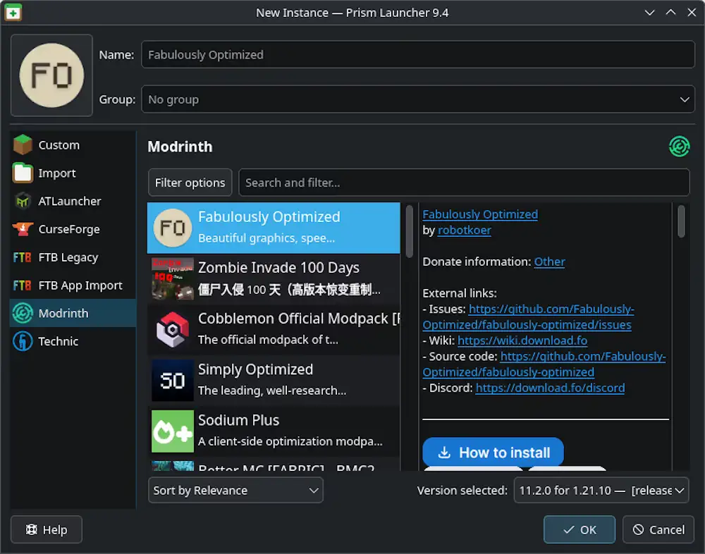 Prism Launcher also offers a more user-friendly interface that gives you full control over how your game is set up. Installing mods is fast and effortless, often requiring just a single click. Thanks to its lightweight design and high performance, the launcher can deliver higher FPS compared to the standard Minecraft launcher or many other alternatives.
