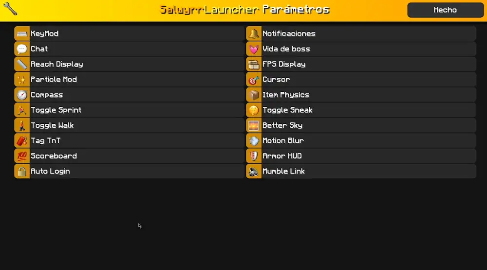 One of the first things you will notice is the launcher’s unique visual style. It clearly stands out from more familiar clients thanks to its custom design and clean layout. Beyond appearance, Salwyrr focuses on stability and comfort, offering performance improvements, built-in protections, and flexible settings that make it easier to adapt the client to your preferences, especially for multiplayer play.